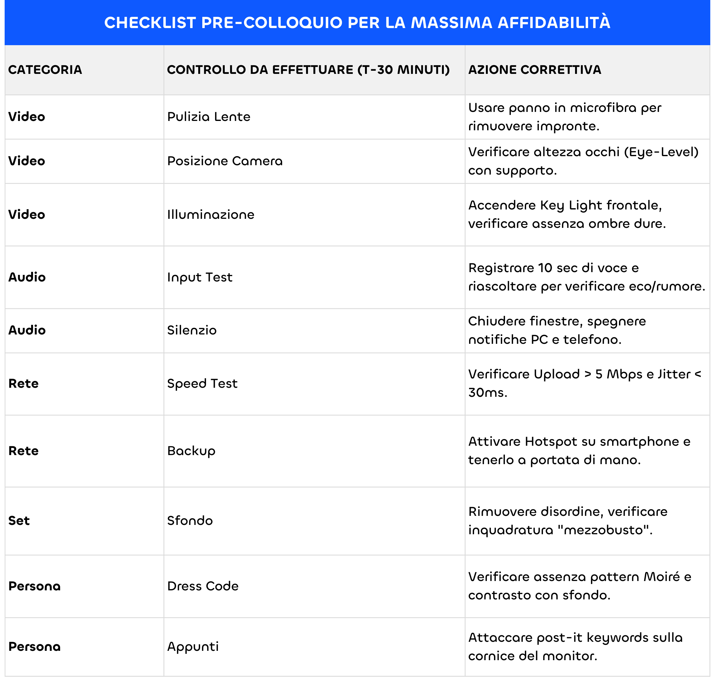 Checklist Pre-Colloquio per la Massima Affidabilità