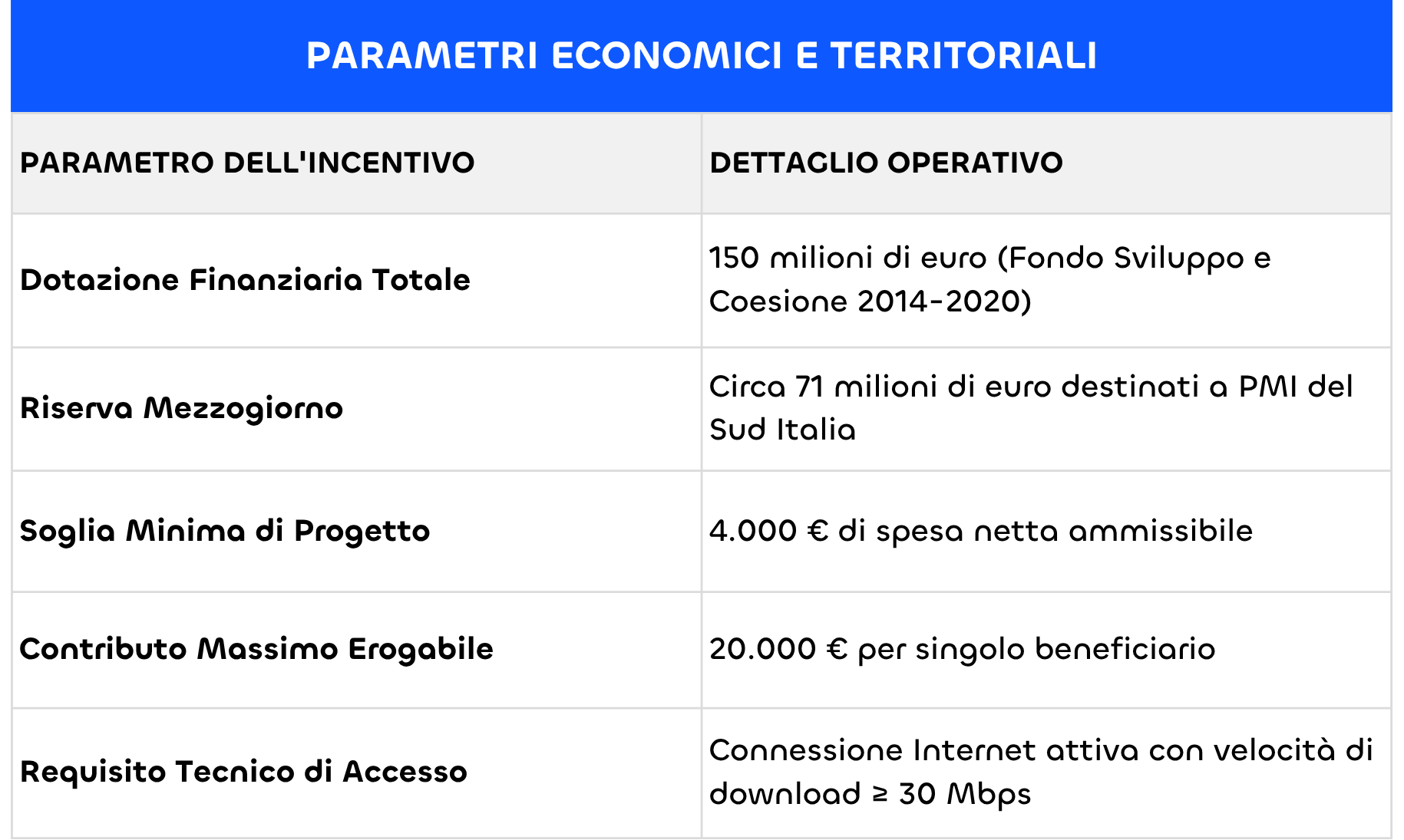 Per garantire investimenti di reale impatto, il legislatore ha stabilito parametri economici e territoriali precisi: